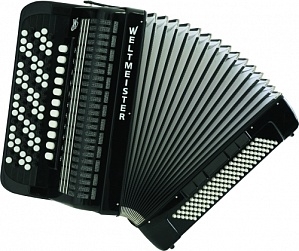 Romance 874 Аккордеон кнопочный Weltmeister 87/120/IV/11/5, черный, с ремнями и кейсом, с итальянскими голосами.