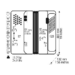 В правой клавиатуре: 87 кнопки, 11 регистров (регистры дискант), диапазон c # - c ''''# . В левой клавиатуре, готовая клавиатура: 120 кнопок, 5 регистров (регистры бас), диапазон Е - d'' #. Голосов дискант (левая рука): 4. Голосов бас (правая рука): 4. Вес: 11,3 кг. Габариты: 48,2 х 19,2 см. Цвет: Черный (02.03.13819). Комплектность: баян, ремни, футляр