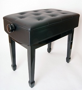 Банкетка для рояля / пианино с прямыми ножками Механизм регулировки высоты: 48-58 см Цвет: верх-черный, кожзам, ножки-черный, глянец Размеры: 59х33х48-58см Вес: 12,0 кг Упаковка: поставляется в разобранном виде