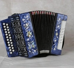 Количество голосов: Одноголосая гармонь. Строй: Клавиатура правая: 23 клавиш, двухрядная, пуговичная, уменьшенные кнопки для удобства игры детям Клавиатура левая: 12 клавиш, двухрядная, кнопочная (6 басов, 6 аккордов)