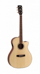 Форма корпуса: гранд аудиториум, с вырезом. Мензура: 648мм. Ширина грифа у верхнего порожка: 45мм. Верхняя дека: ель. Задняя дека и обечайка: красное дерево. Гриф: красное дерево. 20 ладов. Накладка грифа и бридж: мербау. Крепление грифа: ласточкин хвост. Окантовка: многослойная. Литая колковая механика, перламутровая розетка. Электроника: Cort CE306T. Цвет: натуральный.
