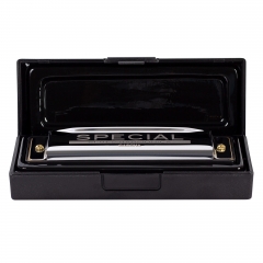 Блюзовая губная гармошка с пластинами премиум-класса из фосфористой бронзы. В комплекте жесткий чехол из пластика и салфетка для чистки.