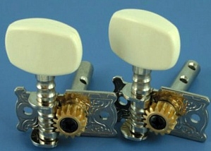 Левый одиночный колок. Отрытый тип. Передаточное число: 1:15. Два отверстия под струну. Диаметр вала: 6мм. Покрытие: никель. Ручка: пластиковая, белая.