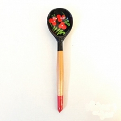 LHL6502 Деревянная ложка маленькая, роспись "Чернушка", Хохлома Материал: береза.Длина: 14,7 см.Ширина черпачка: 3,5 см.