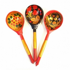 LHL6401 Деревянная ложка полубаская, роспись хохломская традиционная, Хохлома Материал: береза.Длина: 19 см.Ширина черпачка: 6 см.Вес: 0,031 кг
