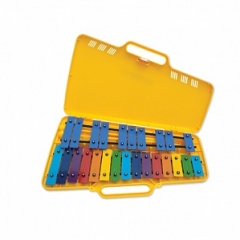 Количество брусков: 25, сталь. Цвет брусков: разноцветные. Диапазон звучания: G4-G6. Пластиковый футляр, складные ножки. Цвет футляра: желтый. Длина: 400 мм. Вес: 1,4 кг. Пара палочек в комплекте.