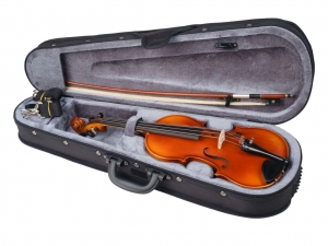 Скрипка HORA Румыния 1/2 + смычок HORA Румыния 1/2 + кейс + канифоль - Скрипка Хора Румыния, модель Страдивари, натуральный деревянный ус на верхней и нижней деках, включая подбородник из черного дерева, 2 машинки, цвет коричневый. Скрипка: - Класс: Студенческая - Верхняя дека: цельная ель - Нижняя дека и обечайка, шейка: клен - Набор: черное дерево - Отделка: полиуретановый лак, полированная Смычок: Трость круглая - бразильское дерево, навивка - серебро, колодка - черное дерево, глазок - имитация перламутра, винт, конский волос. Кейс: Жесткий контурный футляр с двумя ремнями, цвет - черный. Внутренняя отделка кейса: велюр Канифоль: пластиковая коробочка - Комплектность: скрипка, струны, подбородник, смычок, кейс - Производство: HORA Румыния - Вес: 1,6 кг, Объем: 0.019 м3