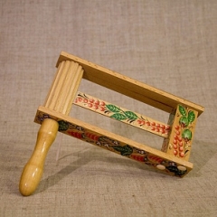 MS-K1-TR-02 Трещотка круговая, большая, 1 категория, Мастерская Сереброва Материал: бук.15 зубцов.Диаметр барабана: 34 мм.Длина 200 мм.Ширина 35 мм.Высота 95 мм.Отделка: роспись, лак.Для ансамблей и оркестров (1 категория).