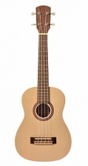 Высота звучания: тенор. Мензура: 400 мм. Верхняя дека -массив ели. Нижняя дека и обечайка - орех. Гриф - бук Накладка и подставка - палисандр Количество ладов: 17. Розетка - переводная картинка Колки - никель Струны - нейлоновые Цвет: натуральный. Отделка: матовая.